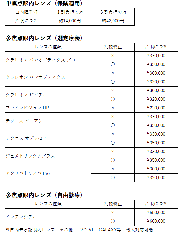 眼内レンズ一覧|佐倉市栄町にある京成佐倉駅近くの眼科-京成さくら眼科